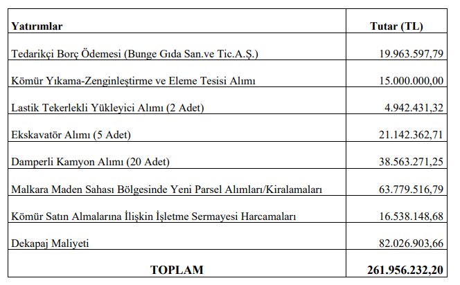 Kamuyu Aydınlatma Platformuna (KAP) yapılan açıklamaya göre, sermaye artırımından elde edilen fonun kullanım yerleri şöyle:
