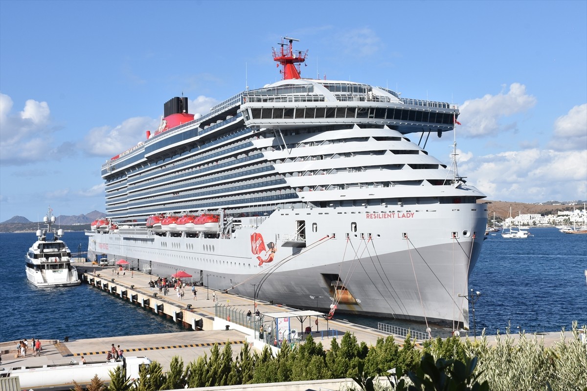 Muğla'nın güzel ilçesi Bodrum, Resilient Lady kruvaziyeriyle 2 bin 612 yolcu ağırladı. Bahamalar bayraklı ve 277 metre uzunluğundaki bu büyük gemi, Santorini Limanı'ndan hareket ederek Bodrum'a ulaştı.