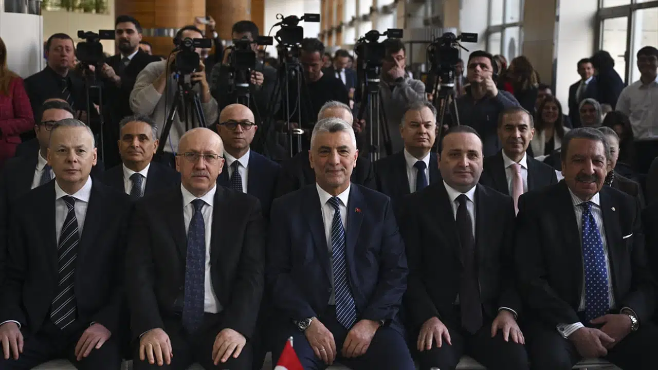 Ticaret Bakanı Ömer Bolat (ortada), "Dünya Gümrük Günü" dolayısıyla Bakanlıkta toplantı düzenledi.