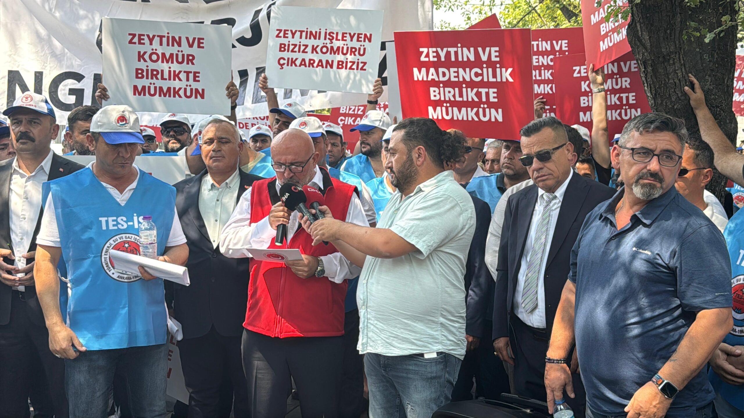 Milaslı muhtarlar ile Türkiye Enerji Su ve Gaz İşçileri Sendikası (TES-İŞ), yeni maden yasasına destek için başkent Ankara'da birer açıklama yaptı.