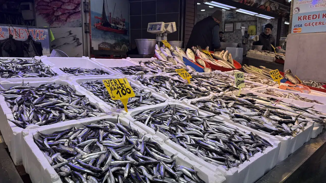 Trabzon'daki balıkçı tezgahlarında hamsi ve istavritin kilogramı 100 liradan satışa sunuluyor.