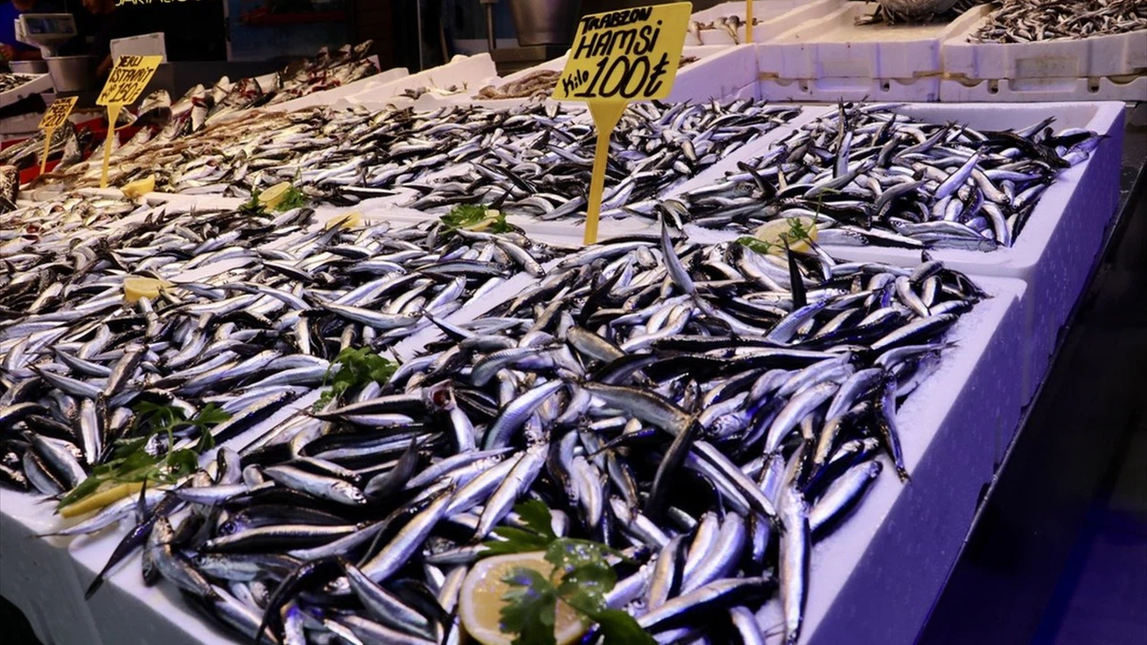 Trabzon'un Ortahisar ilçesindeki balıkçı tezgahlarında hamsinin kilogramı 100 liradan satışa sunuldu.