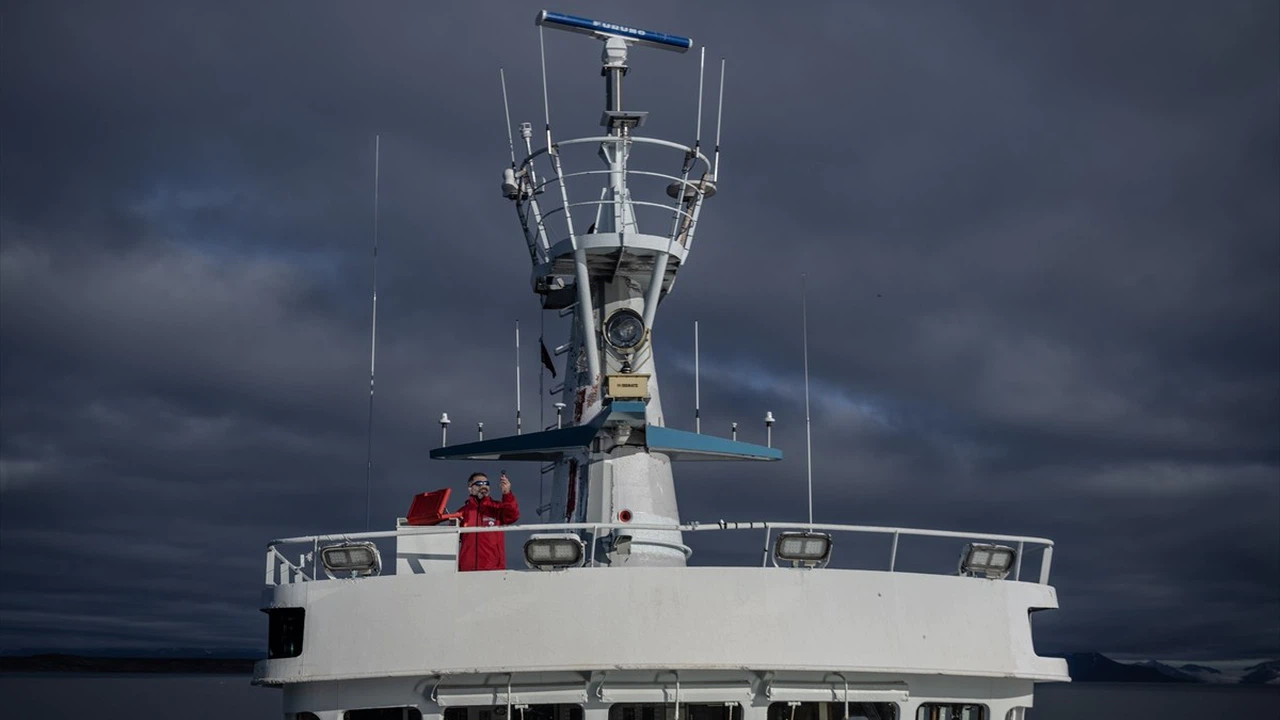 Türk bilim insanları, Kuzey Kutbu ve Güney Kutbu'ndaki bilimsel araştırma seferleriyle atmosfer ve okyanus sistemlerine dair gözlem ve ölçümler gerçekleştirdi. Cumhurbaşkanlığı himayelerinde, Sanayi ve Teknoloji Bakanlığı sorumluluğunda, TÜBİTAK MAM Kutup Araştırmaları Enstitüsü (KARE) koordinasyonuyla yapılan 5. Ulusal Arktik Bilimsel Araştırma Seferi'nde araştırma ekipleri, atmosferden deniz derinliklerine uzanan geniş çaplı bilimsel veri toplama çalışmaları yürüttü. Fotoğrafta, 5. Ulusal Arktik Bilimsel Araştırma Seferi Bilimden Sorumlu Sefer Lider Yardımcısı Doç. Dr. Erhan Arslan çalışmalarını yürütürken görülüyor.