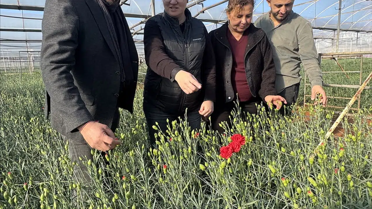 Batı Akdeniz Tarımsal Araştırma Enstitüsü Müdürlüğünce (BATEM) geliştirilen 4 yerli karanfil çeşidi, sektör tarafından üretilerek 37 ülkeye ihraç ediliyor. Yerli karanfillerin üretimini yapan Flash Tarım firmasının üretim sorumlusu ziraat mühendisi Naci Faydacı(solda), Aktif Fide'nin işletme müdürü Anıl İrik (sol2), BATEM'in ziraat mühendislerinden Ayşe Serpil Kaya(sağ 2) karanfillerin doku kültürünü gerçekleştiren ziraat mühendisi Mehmet Uğur Kahraman (sağda) seralardaki yerli karanfilleri inceledi.