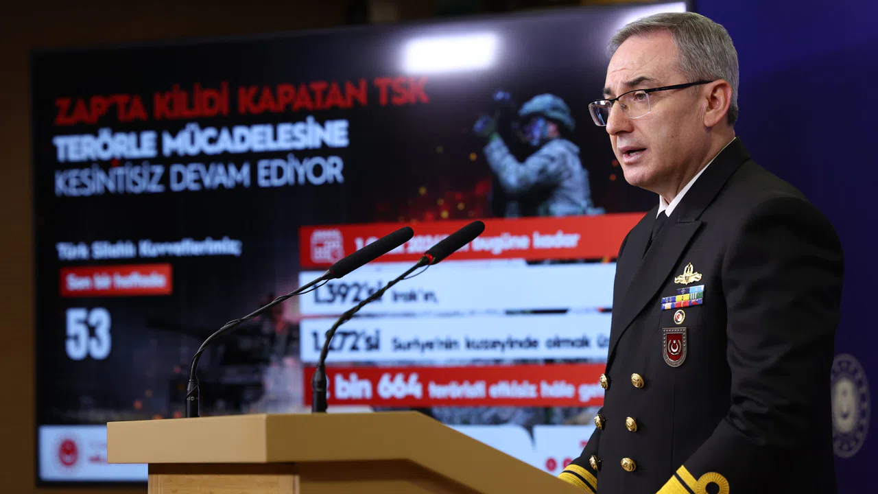 Milli Savunma Bakanlığı (MSB) Basın ve Halkla İlişkiler Müşaviri Tuğamiral Zeki Aktürk, basın bilgilendirme toplantısında Zap’ta kilidi kapatan ve terörle mücadelesini kesintisiz bir şekilde sürdüren Türk Silahlı Kuvvetlerinin son bir haftada 53, 1 Ocak’tan bugüne kadar bin 392’si Irak’ın, bin 272’si Suriye’nin kuzeyinde olmak üzere 2 bin 664 teröristin etkisiz hale getirildiğini açıkladı.