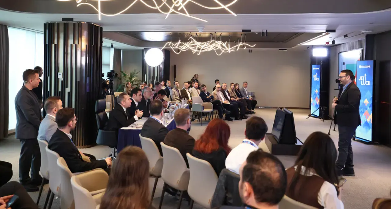 Halkbank tarafından girişimcilere yönelik düzenlenen Jet Luck yarışmasının final aşaması, İstanbul Finans Merkezi’nde yer alan Halkbank Kuleleri’nde gerçekleştirildi. Türkiye’nin dört bir yanından gelen girişimcilerin katılım sağladığı organizasyonda, yenilikçi iş fikirleri jüri karşısına çıktı. Bu yıl üçüncüsü düzenlenen yarışmada, katılımcılar iş modellerini 50 saniyelik "asansör konuşması" formatıyla sundu.