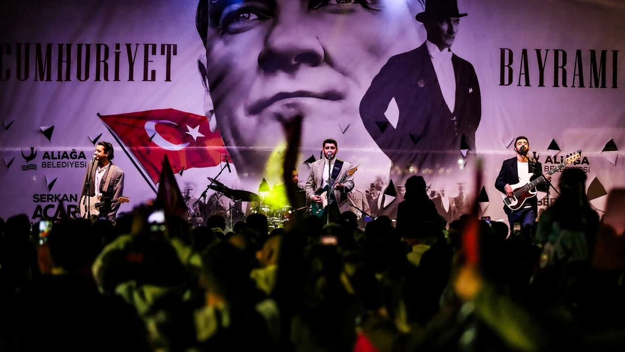 ENKA Spor Salonu önünde bir araya binlerce Aliağalı ellerinde Türk bayrakları ve Atatürk posterleriyle kortej halinde, bando ve marşlar eşliğinde Cumhuriyet Meydanı’na yürüdü. Binlerce vatandaşın katıldığı kortejde Aliağa Kaymakamı Zekeriya Güney, Aliağa Belediye Başkan Vekili Mesut Öztürk, belediye kurum müdürleri, belediye meclis üyeleri, siyasi parti temsilcileri, sivil toplum kuruluşları ve motorlu gruplar yer aldı.