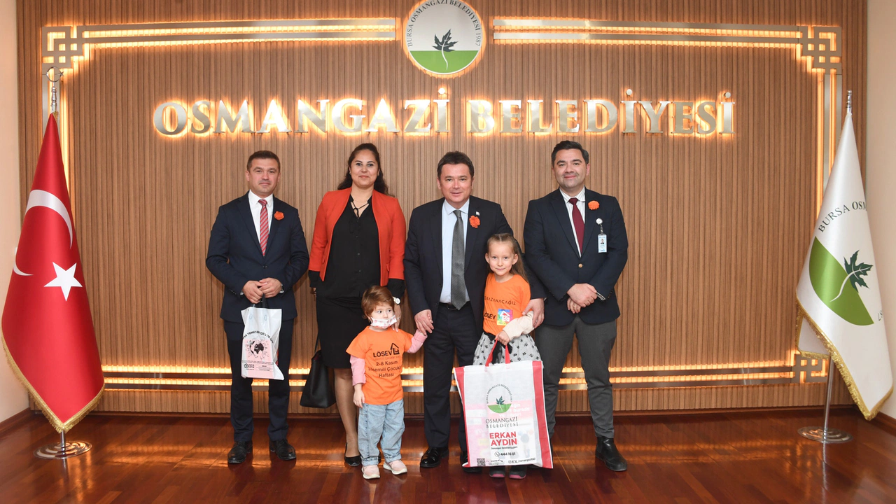 Esila ve Semanur ile makamında bir araya gelen Başkan Aydın, başkanlık koltuğunu konuklarına bıraktı. Misafirleriyle sohbet eden Başkan Aydın, lösemi ile mücadele eden tüm çocukların bir an önce sağlığına kavuşmasını temenni etti. Başkan Aydın, “Çocuklarımızın yüzleri gülsün diye her zaman yanlarındayız. 2-8 Kasım Lösemili Çocuklar Haftası’nın farkında olalım ve kök hücre bağışı ile bir çocuğa umut olalım” dedi.