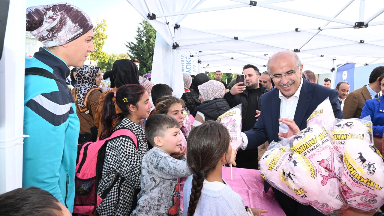 Malatya Büyükşehir Belediye Başkanı Sami Er, eşi Sevgi Er ile birlikte Cumhuriyet Panayırı etkinliklerine katılan çocuklara çeşitli ikramlarda bulundular.