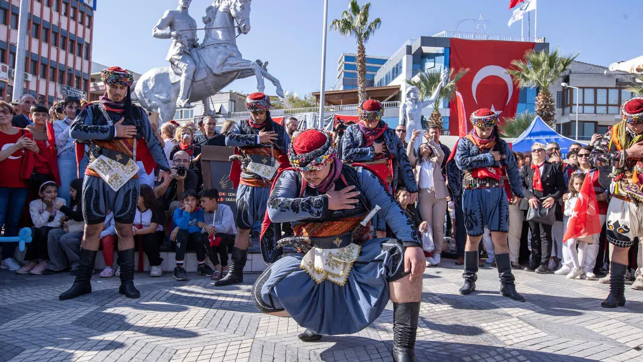 CHP Gençlik Kolları tarafından alanda dev Türk bayrağı açıldı. Menemenliler alanda kutlamalara Atatürk ve Türk bayraklarıyla eşlik etti. Törende İlköğretim 3. Sınıf öğrencisi Havzenur Mancuk, İlköğretim 2. Sınıf öğrencisi Öykü Aydın, Cumhuriyet şiirleri okudu.