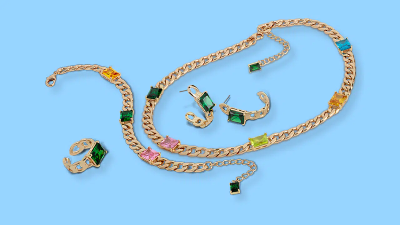 Kübik şekildeki rengarenk safir taşlarla hayal gücünüzü ateşleyecek dört parçadan oluşan Alwan Set’in her bir parçası adeta bir renk cümbüşü sunuyor. Kombinlerinize sadece ihtişam katmakla kalmayıp, aynı zamanda cesur ve sıra dışı yönlerinizi ortaya çıkarmanıza olanak tanıyacak set, her bir parçasıyla dikkatleri üzerinize çekiyor.