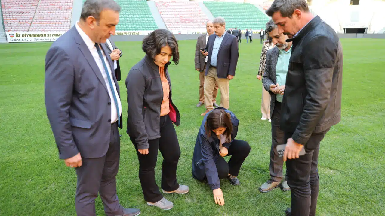 Diyarbakır Büyükşehir Belediyesi Eş Başkanları Serra Bucak ve Doğan Hatun, Diyarbakır Stadyumu’nda inceleme yaptı.