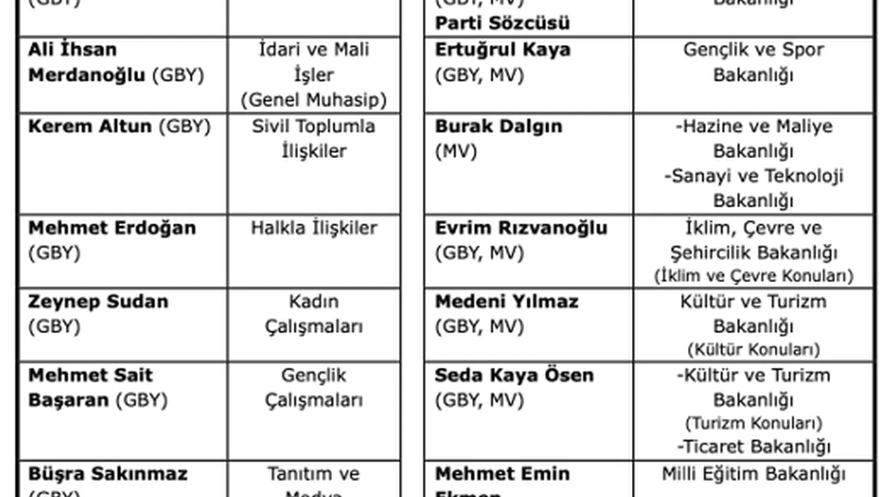 DEVA Partisi’ndeki yeni görev dağılımı şu şekilde: