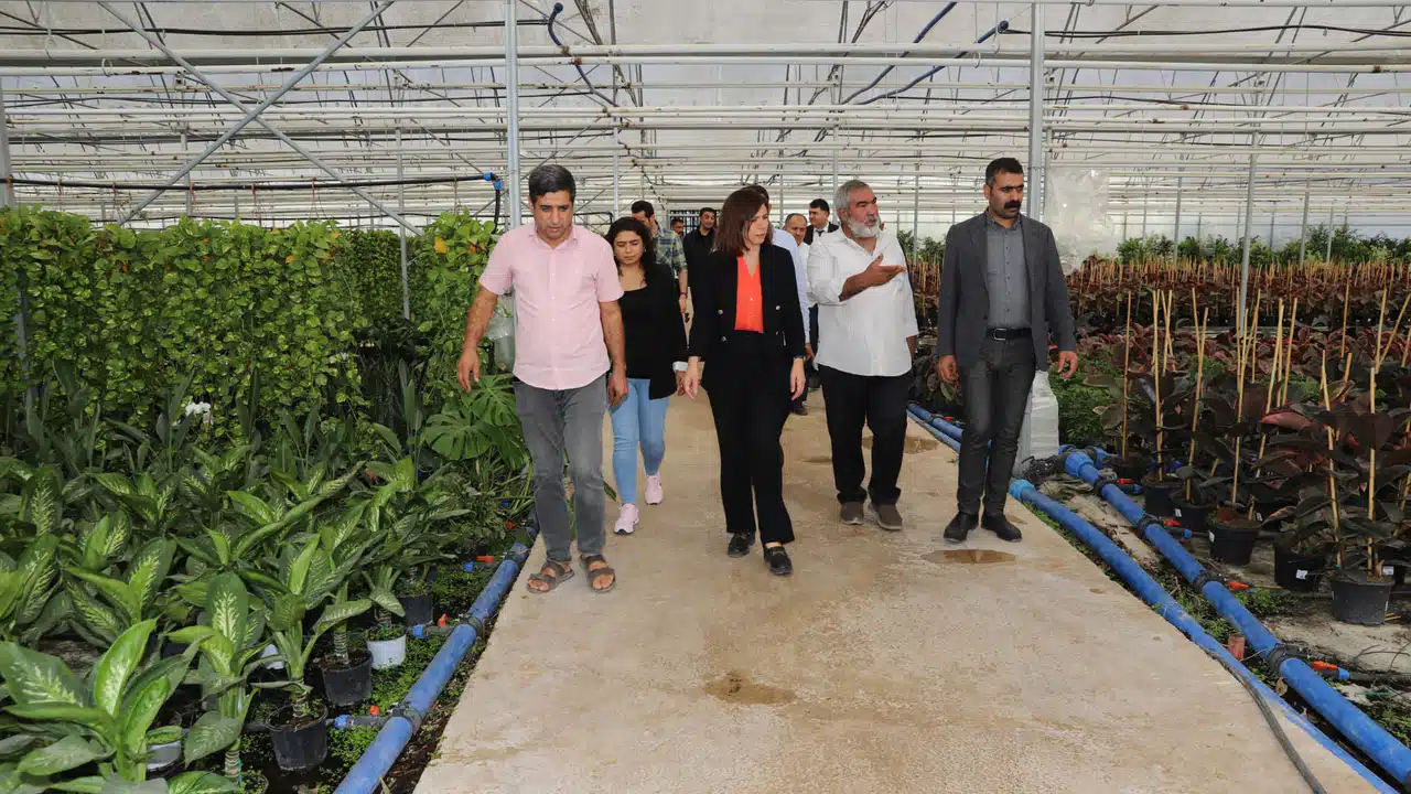 Büyükşehir Belediyesi Eş Başkanları Serra Bucak ve Doğan Hatun, Eyyübiye ilçesine bağlı Karaali Mahallesi’ndeki sera alanlarını ziyaret etti. Termal tesis ile topraksız tarımın yapıldığı ve süs bitkilerinin yetiştirildiği sera alanlarını gezen Eş Başkanlar Bucak ve Hatun, seralardaki çalışmaları yerinde inceledi.