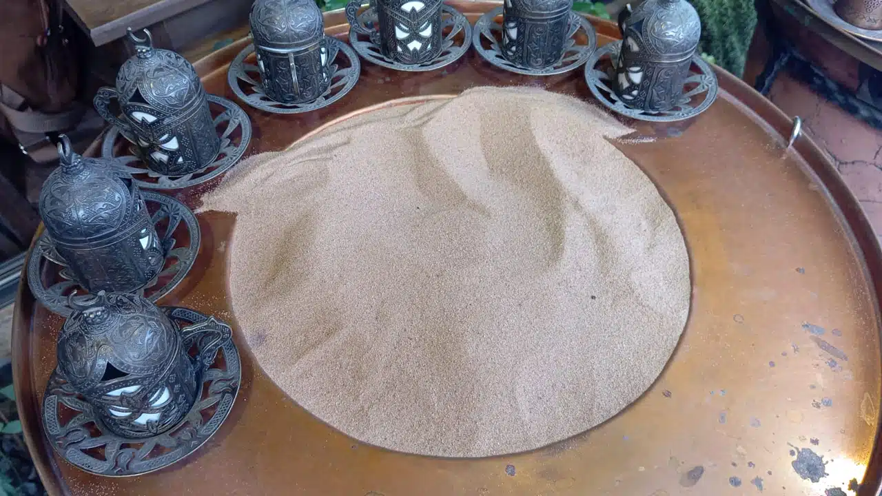 Kumda kahvenin özellikleri hakkında bilgi veren esnaf Zafer Değirmenci, "Çöl kumu, içerisinde sıcağı barındırabilen kum çeşitlerinden biri haline geldi. Makine kapansa bile 1 saat daha kahve yapılabiliyor. Kahvelerimiz bize özel, mesela cevizli değirmen kahvesi, portakallı naneli, bademli kahve, mezopotamya kahve gibi bunlar sadece bize özel kahveler. Normal yöresel kahveler gibi kahvenin daha iyi pişmesini sağlıyor mesela ocakta yaptığınızla aynı lezzeti yakalayamıyorsunuz" dedi.