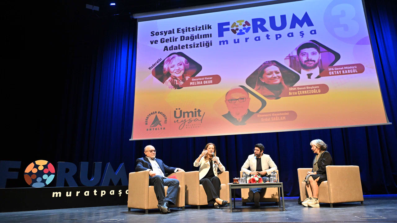 Muratpaşa Belediyesi’nin demokratik ve kalkınmış bir Türkiye hedefiyle gerçekleştirdiği Forum Muratpaşa, kasım ayında “Sosyal Eşitsizlik ve Gelir Dağılımı Adaletsizliği’ gündemiyle Türkan Şoray Kültür Merkezi’nde toplandı.