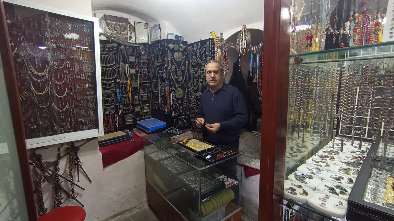 Diyarbakır’ın Sur İlçesinde han girişinde yer alan Gümüşçüsü Sait Gökal, bu mesleğe 35 yıl önce başladığını belirtti.