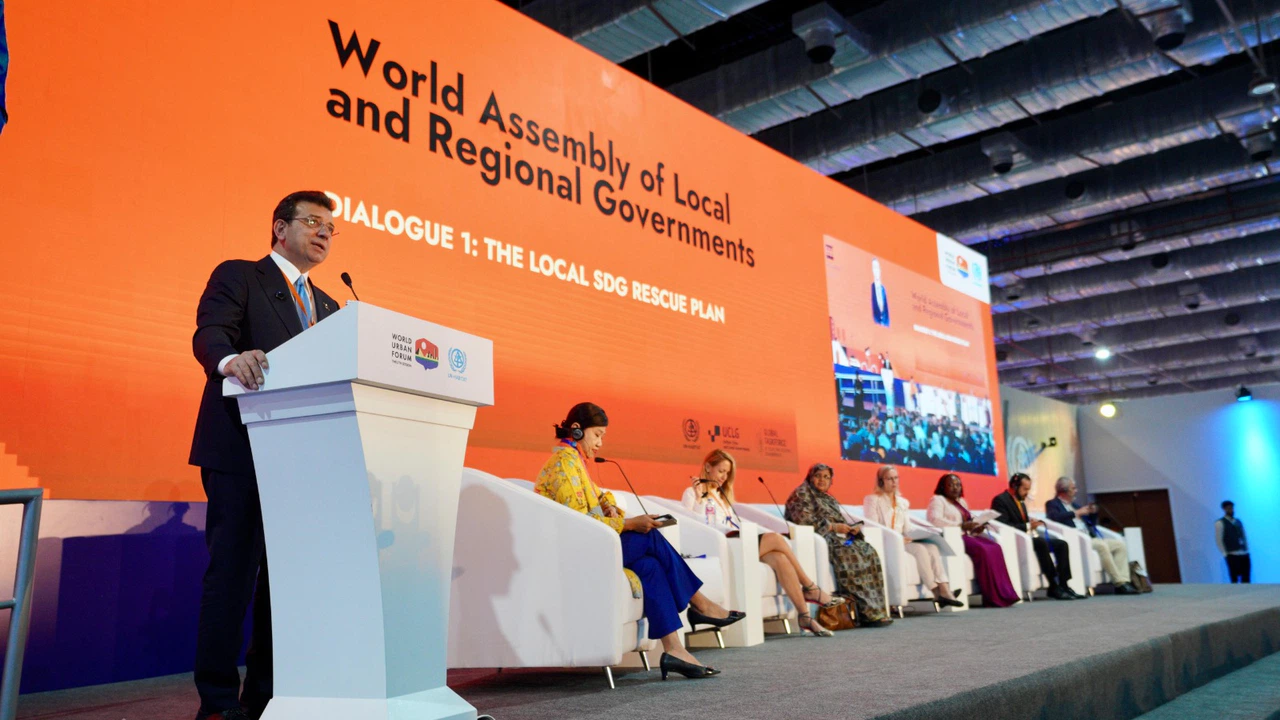 İmamoğlu, dünyanın farklı coğrafyalarından yerel yöneticileri bir araya getiren WUF12’nin, “Yerel Sürdürülebilir Kalkınma Amaçları Kurtarma Planı” başlıklı oturumunda; Madrid (İspanya) Belediye Başkanı José Luis Martinez-Almeida, Banjul (Gambiya) Belediye Başkanı Rohey Malick Lowe, Cobija (Bolivya) Belediye Başkanı Ana Lucía Reis, Nuakşot (Moritanya) Bölge Konseyi Başkanı Fatimetou Abdel Malick, Santo Domingo (Dominik Cumhuriyeti) Belediye Başkanı Carolina Mejia, Tanca (Fas) Belediye Başkanı Mounir Laymouri ve Barselona (İspanya) İl Konseyi Başkan Yardımcısı M. Eugènia Gay ile birlikte konuşmacı olarak yer aldı.