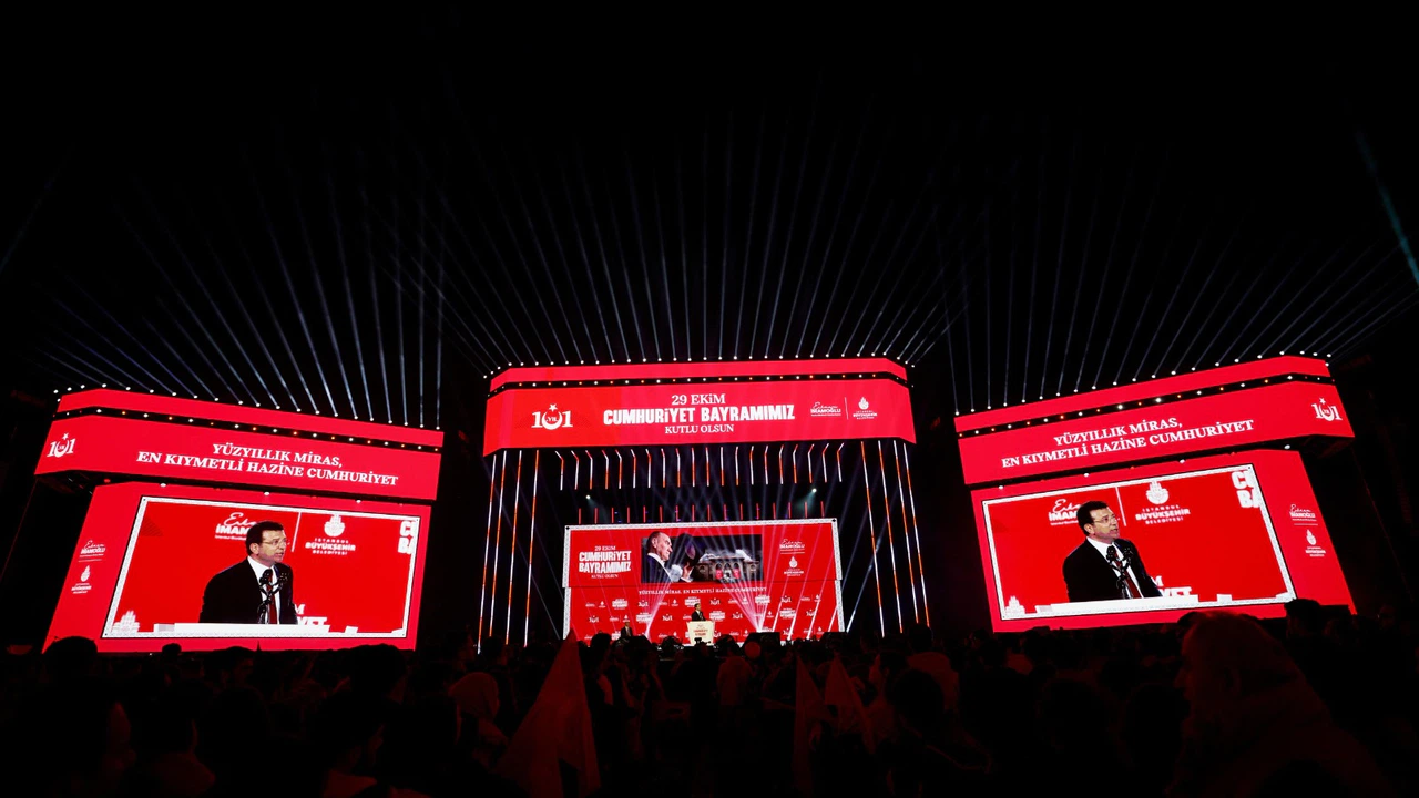 Türkiye Belediyeler Birliği (TBB) ve İstanbul Büyükşehir Belediye (İBB) Başkanı Ekrem İmamoğlu, gün boyu süren etkinlerde, İstanbulluların 29 Ekim Cumhuriyet Bayramı coşkusuna ortak oldu. Günün finalini, İBB’nin Yenikapı’da düzenlediği kutlama programına katılarak yapan İmamoğlu, özel tasarım sahnede vatandaşlara seslendi.