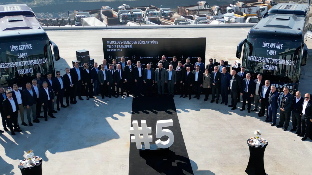Artvin, Ankara, İstanbul ve Bursa hatları arasında faaliyetlerini sürdüren Lüks Artvin Seyahat, filosunu 5 yeni Mercedes-Benz Tourismo 16 RHD 2+1 ile büyüttü. Yeni araçların teslimatı için Hasmer Otomotiv Yatırım ve Pazarlama A.Ş.’nin Düzce’deki lokasyonunda gerçekleştirilen tören, Lüks Artvin Seyahat Yönetim Kurulu Üyesi Arslan Aydemir, Hasmer Otomotiv Yatırım ve Pazarlama A.Ş. Yönetim Kurulu Başkan Yardımcısı Zafer Sağlam, Mercedes-Benz Türk Otobüs Pazarlama ve Satış Direktörü Osman Nuri Aksoy, Mercedes-Benz Türk Otobüs Filo Satış Grup Müdürü Burak Batumlu, Mercedes-Benz Türk Otobüs Satış Operasyonları Grup Müdürü Özgür Taşgın, Mercedes-Benz Türk Busstore Grup Müdürü Hakan Daşdemir, Mercedes-Benz Türk Satış Sonrası Hizmetler Teknik Grup Müdürü Cihan Tömek ve Mercedes-Benz Kamyon Finansman Otobüs ve Fuso Satış Pazarlama Müdürü Kemal Üşenmez’in olduğu kapsamlı bir katılımla gerçekleştirildi.