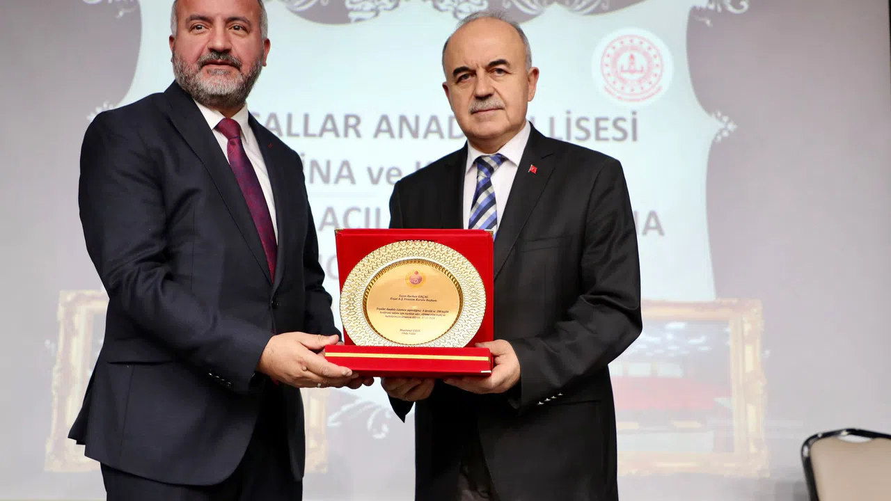 Vali Muammer Erol, Hayırsever İş İnsanı Erçal A.Ş. Yönetim Kurulu Başkanı Burhan Erçal’a eğitime verdiği destek dolayısıyla teşekkür ederek, plaket verdi.