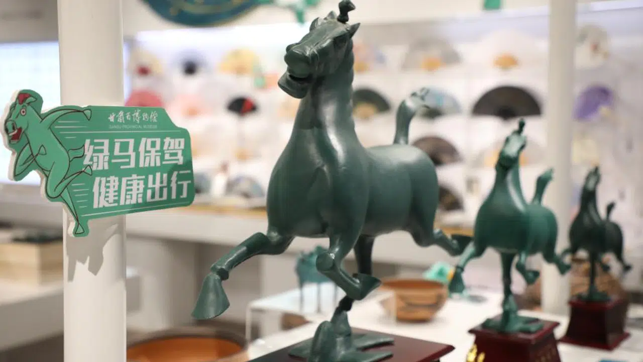 28 Haziran 2022’de, Gansu Müzesi’nin kültürel yaratıcılık dükkanında satılan bronzdan at desenli ürünler.