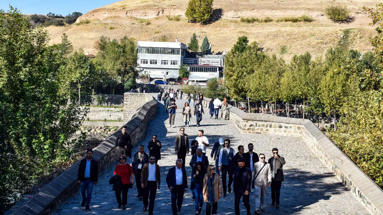 Büyükşehir Belediyesi meclis üyeleri ve personelinin eşlik ettiği konuklar, ilk olarak On Gözlü Köprü’yü gezerek köprü hakkında bilgi aldı, hatıra fotoğrafı çektirdi.