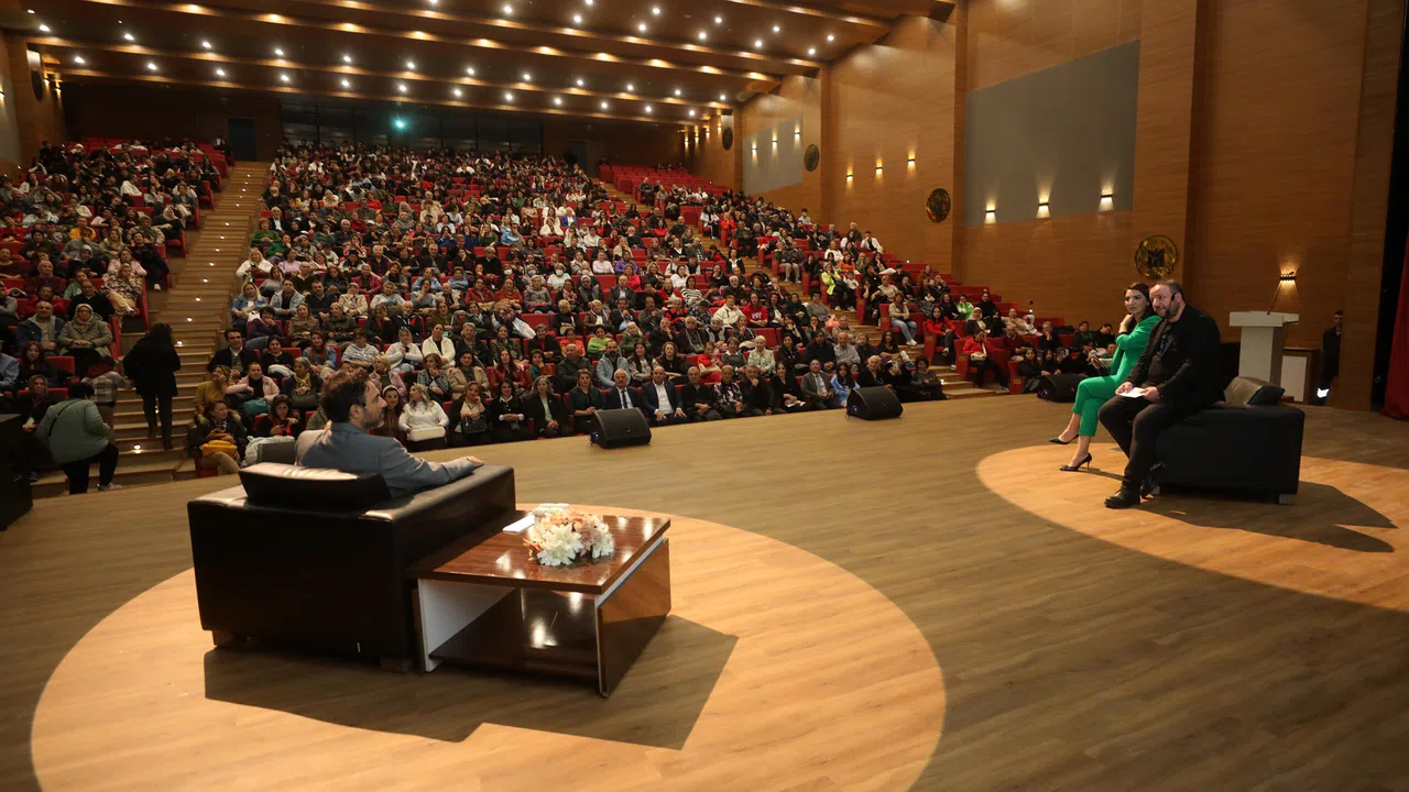 Sorusu olan gençleri sahneye alarak sohbet eden Aslan; gençlere hangi mesleği yaparsanız yapın anı kaçırmayın ama muhakkak akademik kariyer yapın derken ebeveynlere de hırslarınızı, beklentilerinizi, kendi yapmak isteyip de yapamadıklarınızı çocuklarınıza yüklemeyin tavsiyesinde bulundu.